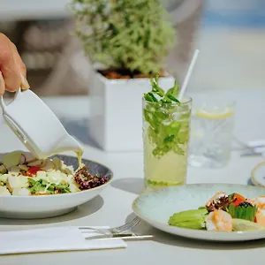 El Golden Bay Beach Hotel cuenta con el restaurante a la carta Yacht Club, que sirve comida internacional.